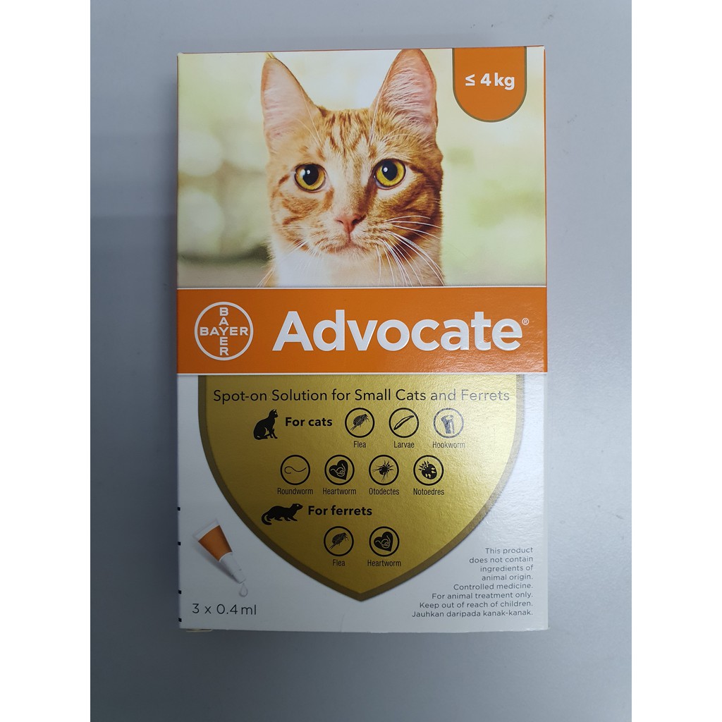 Advocate Spot On Solution For Small Cat 4kg 3 X 0 4ml Advocate Cat Fleas Heartworm Ear Mite Worms Ubat Kutu Shopee Malaysia